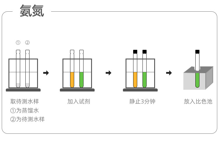 分析過程中只需將規定量的水樣注入試劑或將試劑溶解在規定量的水樣中,按程序操作后,將樣品瓶放入分光光度計或比色計中(預存有標準曲線)直接讀數便可得到精確的測試結果。
